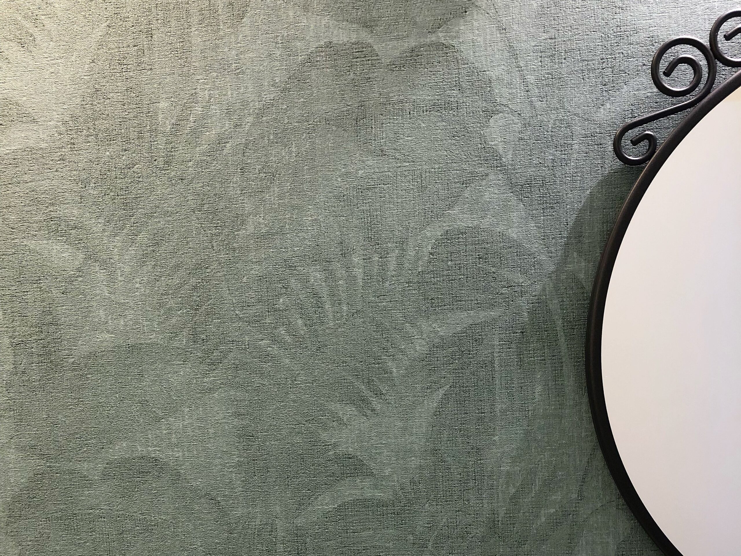 - Carta da parati decorativa a parete e soffitto nella zona cucina, che definisce lo spazio e lo separa visivamente dalla zona living