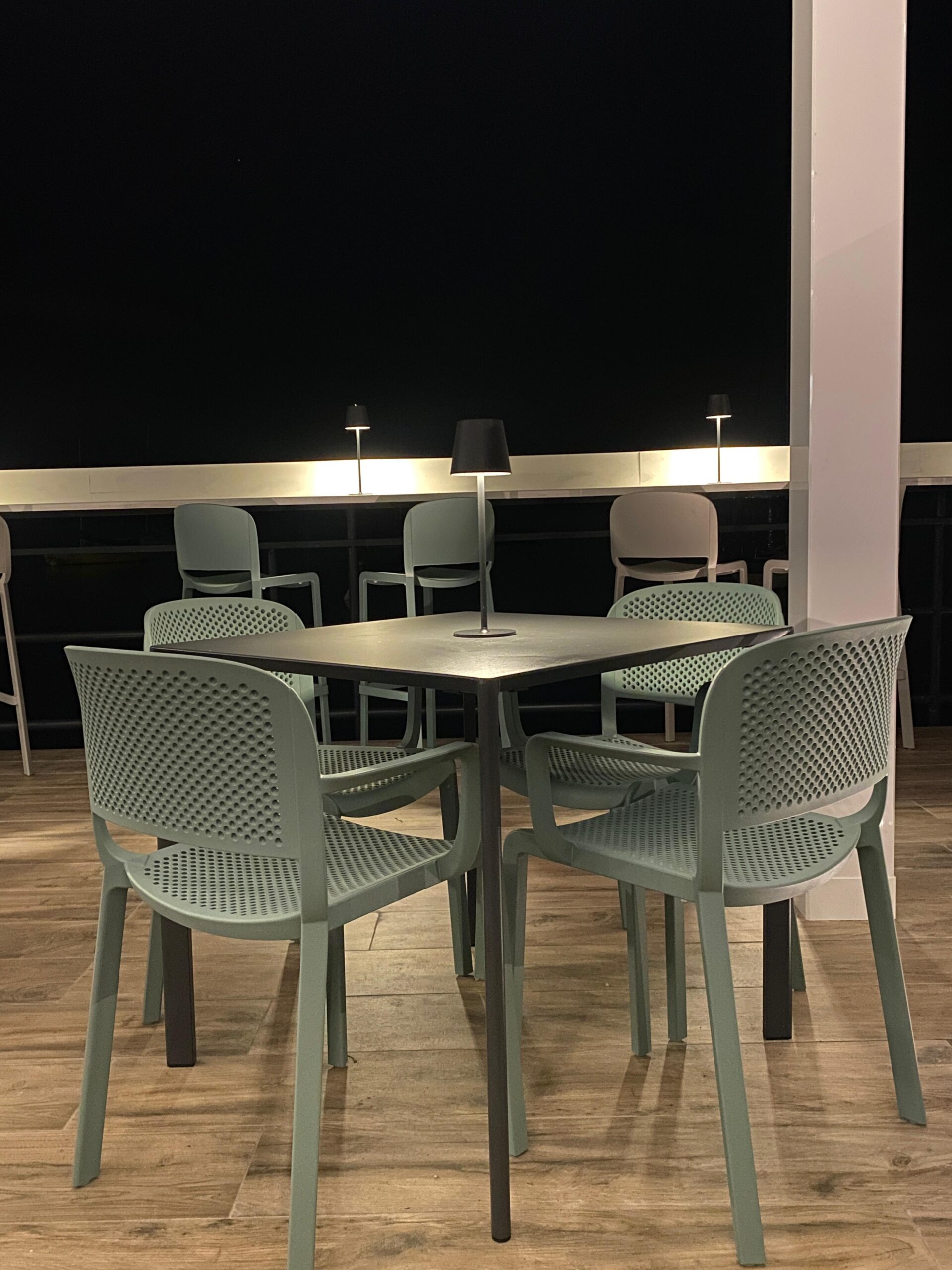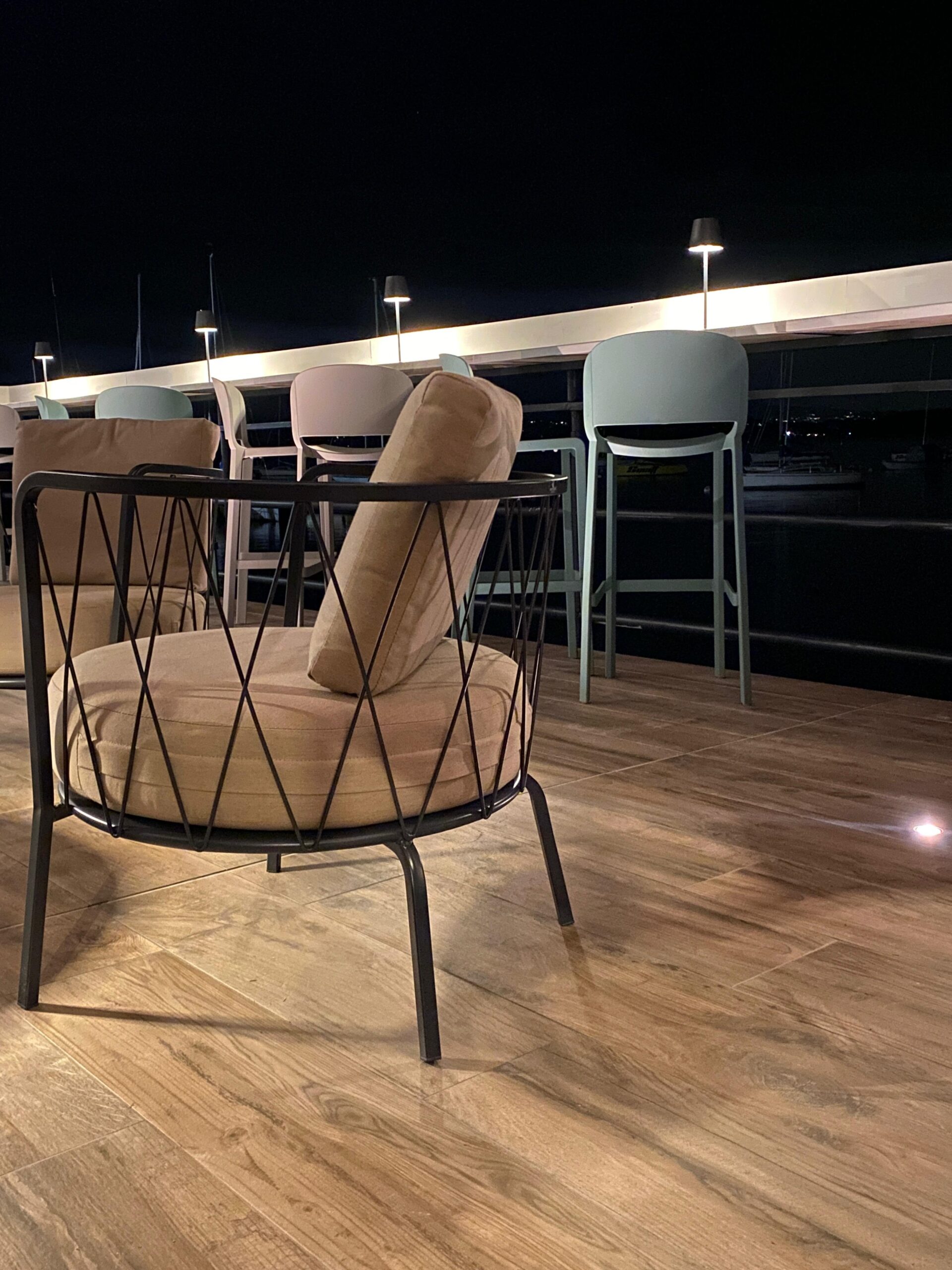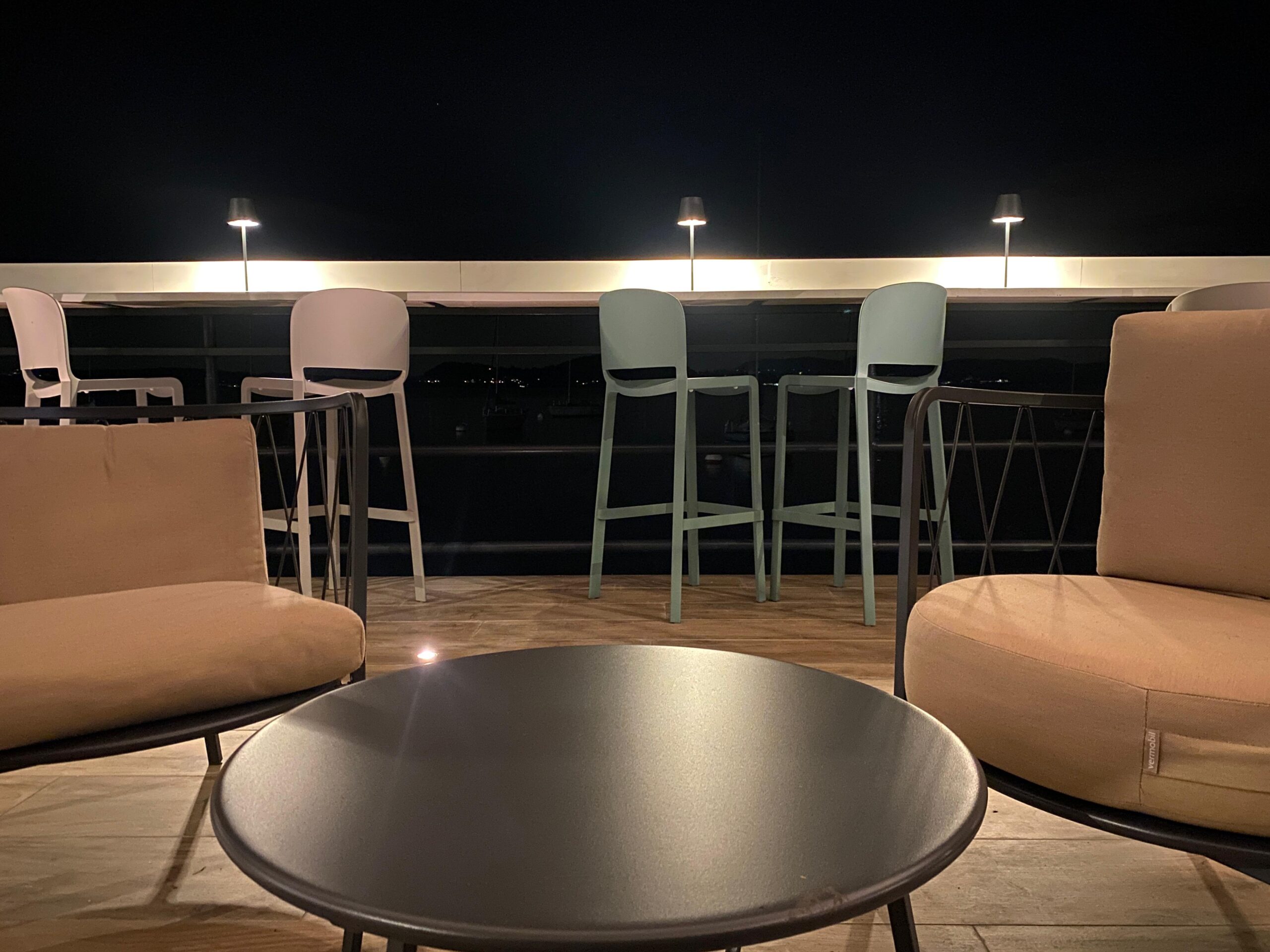 Di giorno, la luce riflessa sull’acqua regala trasparenze uniche. Di sera, la luna sul lago e le luci soffuse del locale creano un’atmosfera intima e incantevole, ideale per sorseggiare un cocktail in relax.